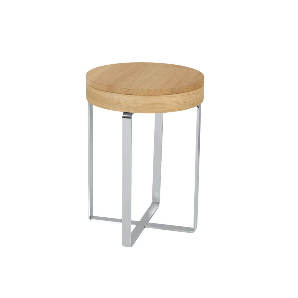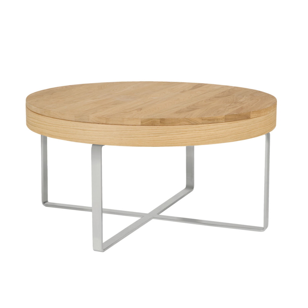 Three different spherical variants of the Secret coffee table are available. The top of one is totally composed of wood, while the tops of the other two are supported by a metal frame. And, as the name implies, they’re all hiding something. Simply flip the top open to reveal useful storage for tiny objects.